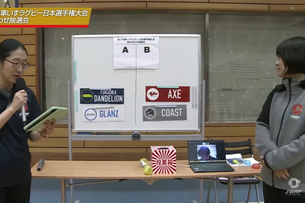 12月12日(金)~14日(日)に千葉ポートアリーナで開催される「第27回車いすラグビー日本選手権」(以下、本戦)、最後の予選会となる神奈川大会が11月1日(土)~2日(日)に行われ、パラネットは大会運営全体をサポートしました。今回出場したのは各地で実施された予選1巡目で2位通過となったFukuoka DANDELION(福岡)、AXE(埼玉)、RIZE CHIBA(千葉)の3チームが出場。組み合わせ抽選に有利となるよう、1つでも多く勝利しようと各チームが試合に臨んでいました。そのほか、初日の最後には女子選手育成を目的としたエキシビションゲームも。青年団チーム(男子)と女子チームが対戦し、女子チームが接戦を制し勝利。なお、全予選終了後、本戦の組み合わせ抽選会が行われ、パラネットがくじ引きを担当しました。