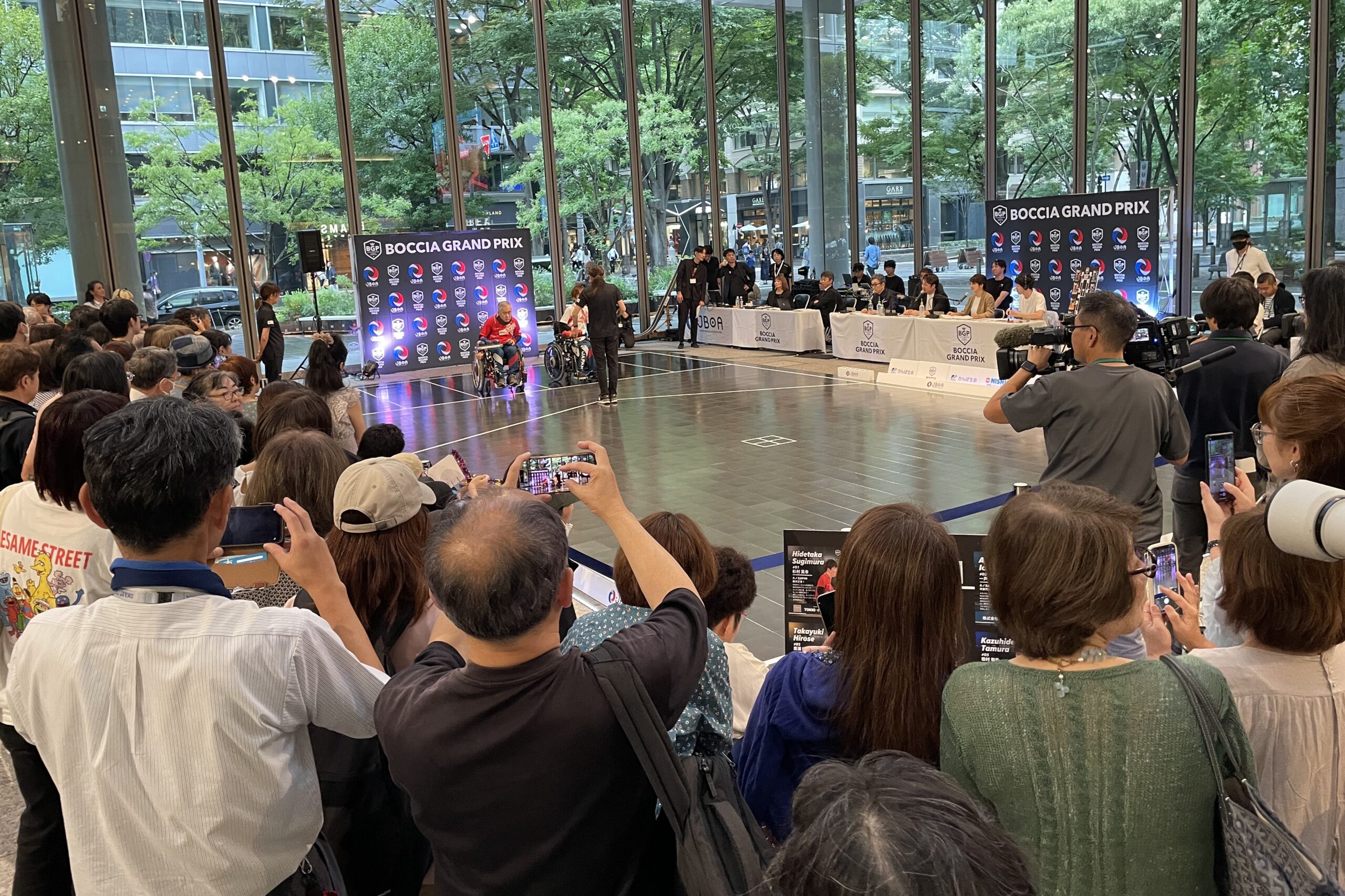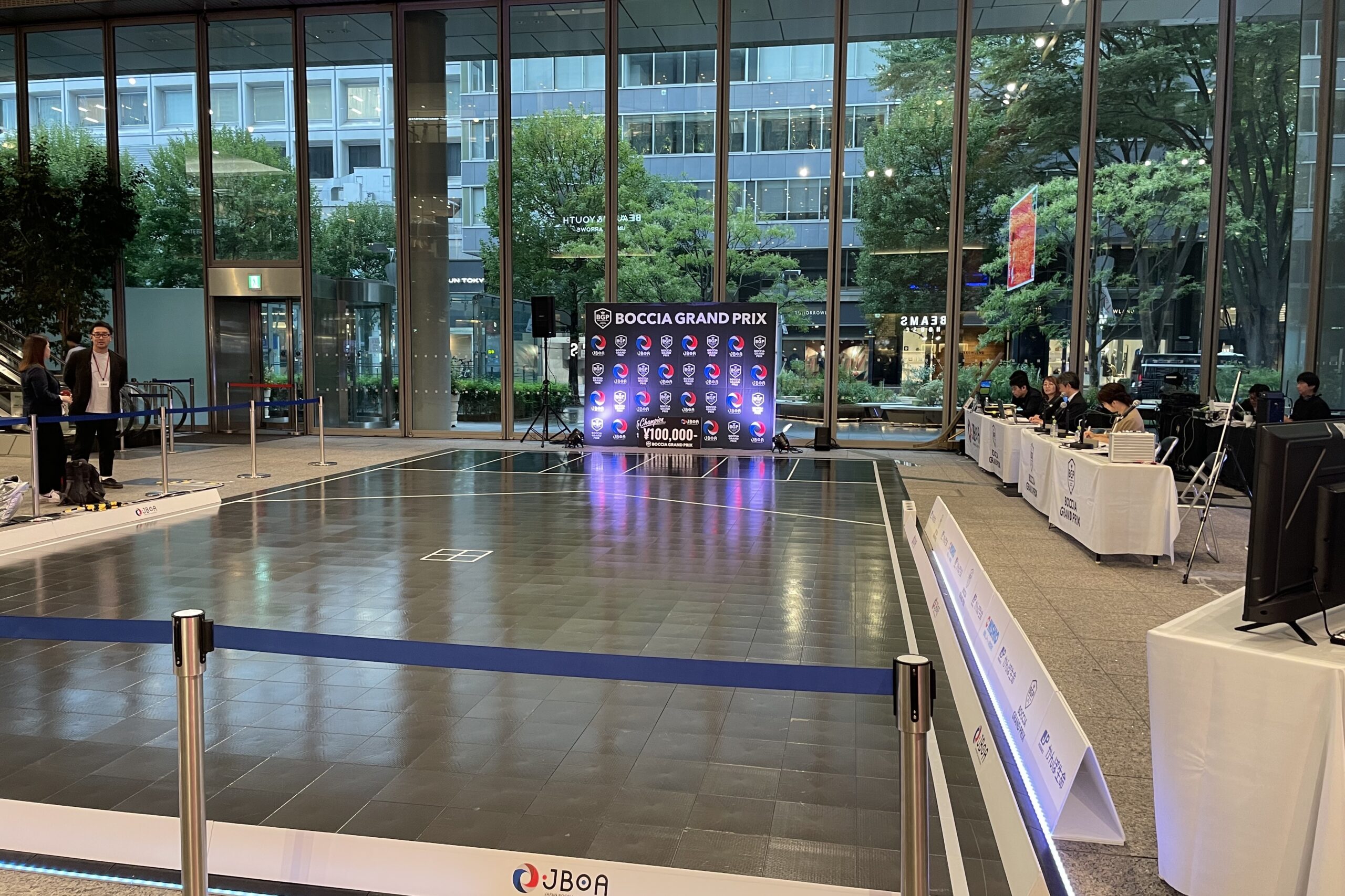 一般社団法人日本ボッチャ協会は、来年度より開催予定の「BOCCIA GRAND PRIX」に先駆け、10月4日、東京・丸の内の丸ビル「マルキューブ」にてプレ大会を開催しました。プレ大会には、火ノ玉JAPANを含む協会推薦による有力選手8名が出場し、ハイレベルな戦いが繰り広げられました。決勝戦は鶴井純一郎選手(川崎ボッチャーレ)と田村和秀選手(NEC Boccia Stellar)というボッチャ競技に打ち込んできた2人の終始ミスのない見応えのある対戦となり、白熱した試合の末、田村選手が7-1で見事優勝を果たしました。