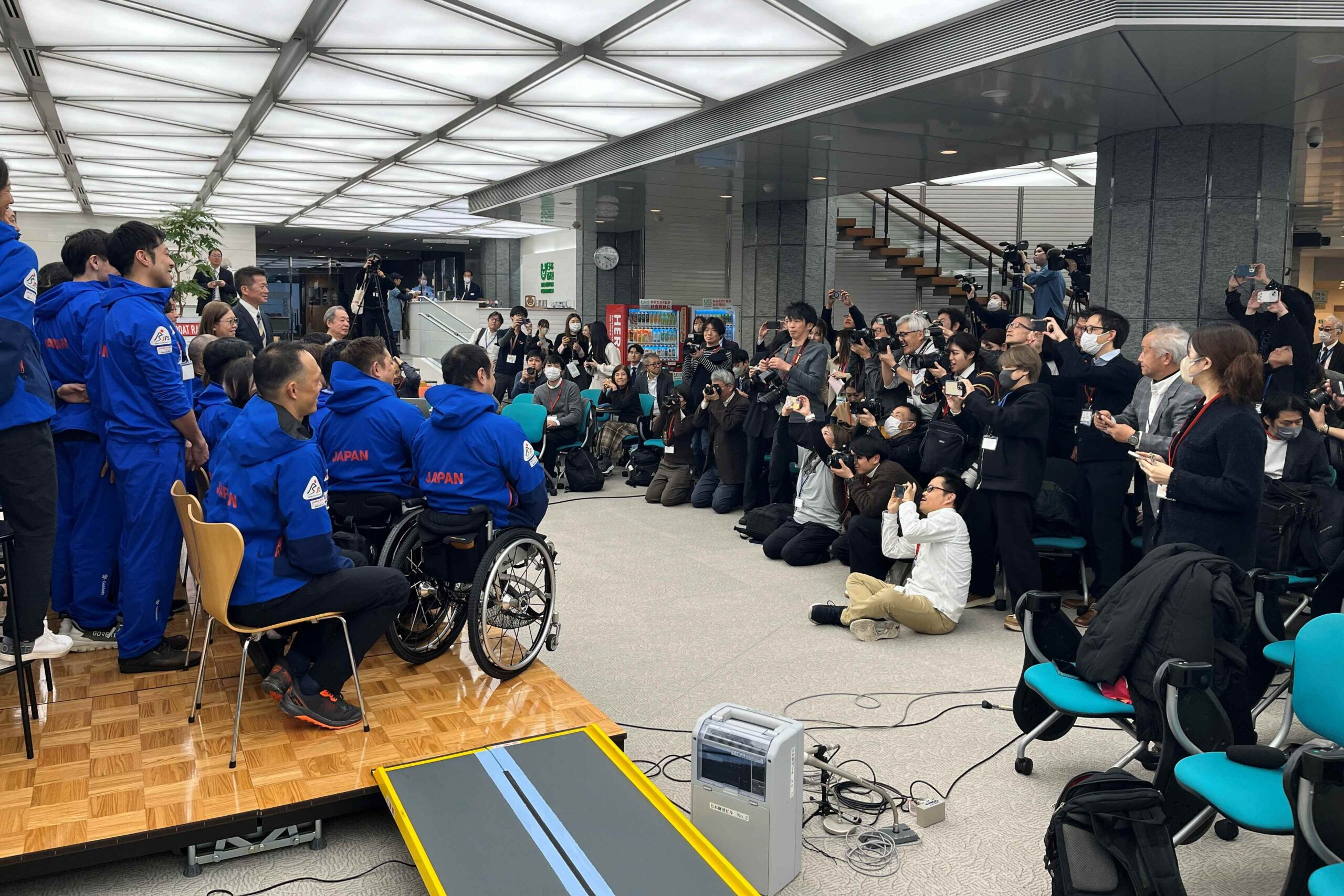 午後からは協会と連携に関する覚書を締結している府中市、デフリンピックの会場(京王アリーナTOKYO)のある調布市2市による日本代表壮行会も開かれました。壮行会終了後にはメディアへ向けた取材の時間も設けられ、デフリンピックに向けた仕上がり具合や、本番までに強化したいこと、日本でデフリンピックが開催される意義など、各選手はそれぞれの質問に対して丁寧に回答。パラネットは、練習公開および壮行会の広報面でサポートを実施しました。